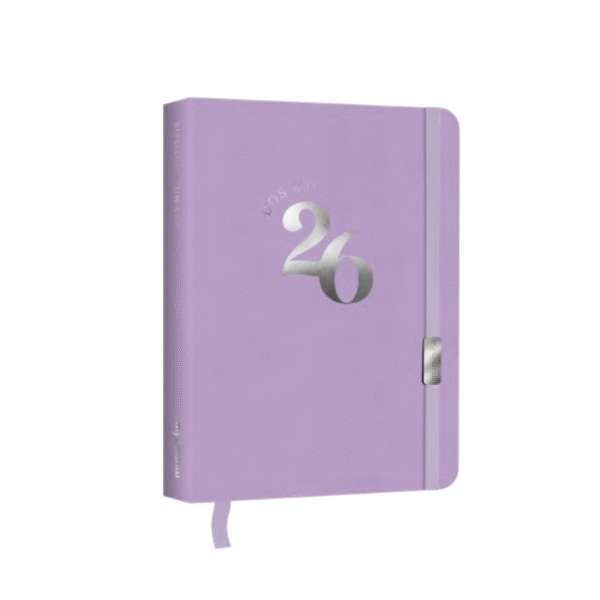 Agenda Classic 12×17 con 2 días por página. Tapa en cuero PU texturado con detalles en hot stamping y lomo cosido. Elegante y práctica para la oficina o el día a día.