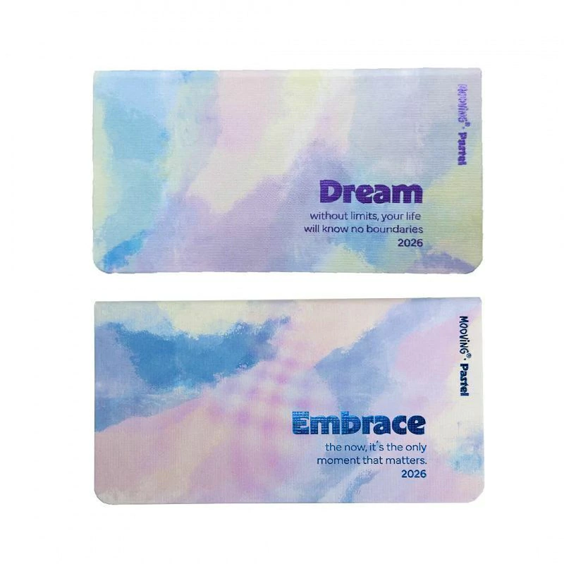 Agenda 2026 Mooving Pocket Cosida: formato compacto para llevar a todas partes, diseño cosido y cinta señaladora. Vista semanal para planificar cada día con estilo y practicidad.