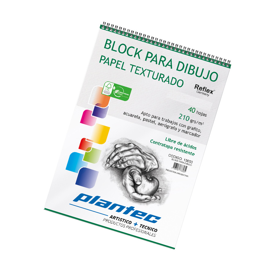 Los blocks anillados para dibujo PLANTEC texturados son elaborados con tecnología de avanzada, libres de ácidos y cloro. Poseen excelente superficie blanca texturada que le confiere categoría y presencia al proyecto a concretar. Estos blocks anillados son ideales para grafito, tinta, aerógrafo, acrílico, pastel y marcador.