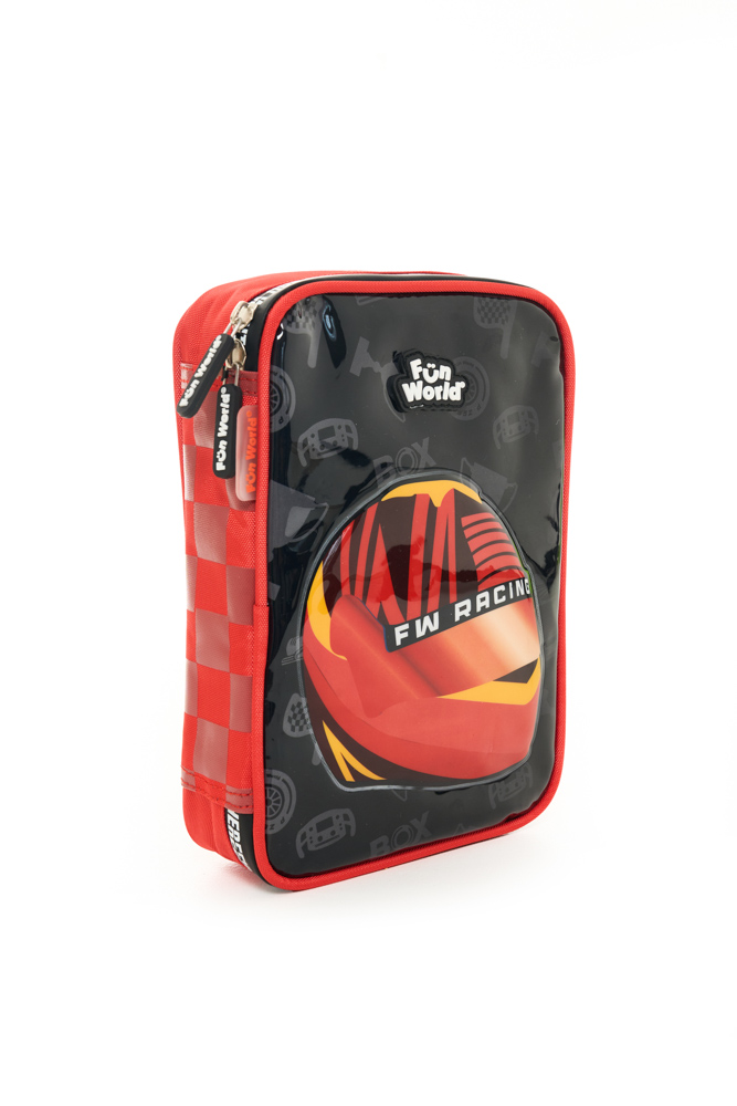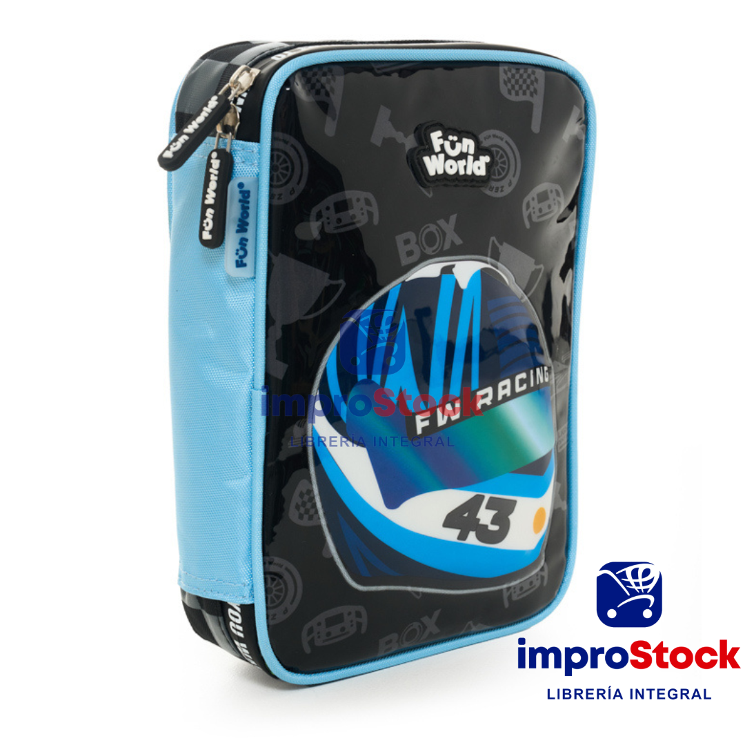 Cartuchera Race Rectangular Moderna y funcional, confeccionada con detalles deportivos y dinámicos. Cuenta con 36 elásticos regulares y bolsillo de red para una organización práctica, parche de PVC impreso, name tag, y cierre de goma impreso con diseño y doble tirador. Disponible en dos colores, es ideal para quienes buscan estilo y organización en un solo accesorio.