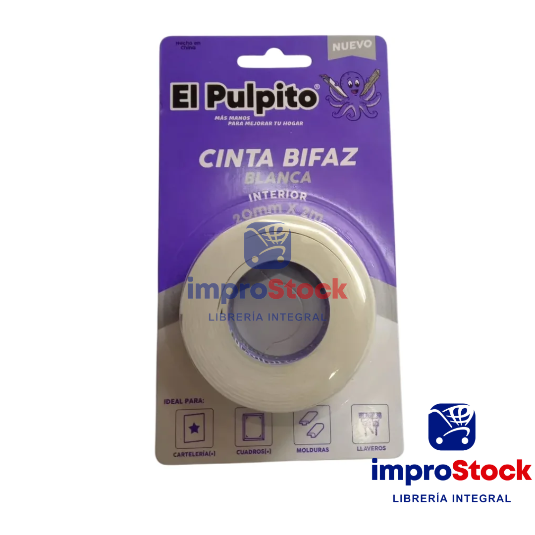 Cinta Bi-Faz Blanca 20mmX2m El Pulpito (342243) cantidad