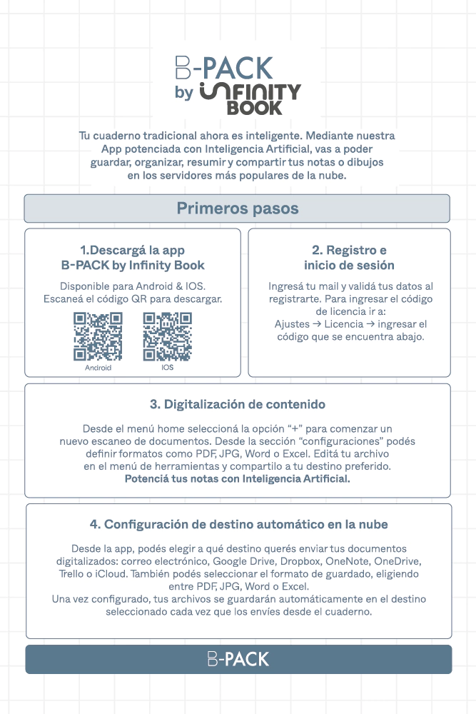 ¿Seguís usando cuadernos del siglo pasado? El Infinity Book Fw A4 llegó para resetear tu forma de estudiar y laburar. Con 120 hojasCuadriculadas y una app propia con IA, pasás tus apuntes del papel al celu en un toque. Escaneá, resumí con inteligencia artificial y subí todo a la nube para tener tus ideas a mano, siempre. Es el mix perfecto entre el placer de escribir y la practicidad digital. ¡Subí de nivel y digitalizá tu mente!