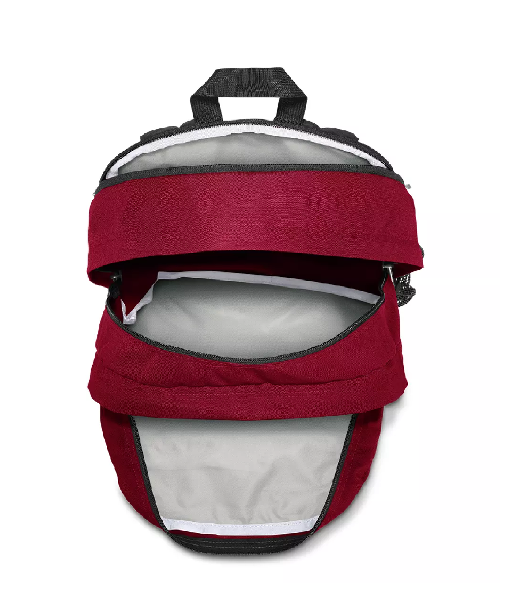 Mochila de 3 compartimentos con bolsillos externos con cierre y bolsillo lateral para botella de agua. Uno de los bolsillos es porta laptop 15″. Medidas 43.5 X 33 X 20.5 cm. Capacidad: 34 litros.