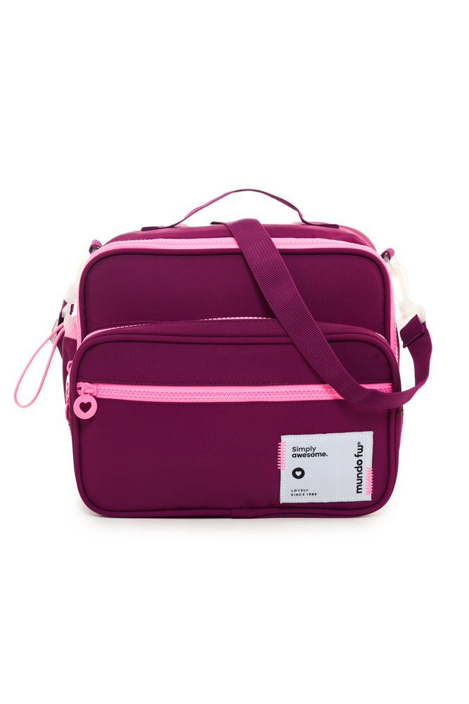 Lunchera Sugar FW: práctica, resistente y con un diseño súper colorido. Cuenta con interior térmico que mantiene la comida fresca por más tiempo, cierre reforzado, correa regulable y manija cómoda para llevarla como más te guste. Su tamaño es ideal para viandas completas y está hecha con materiales duraderos y fáciles de limpiar. Perfecta para el cole, las actividades y las salidas de todos los días.