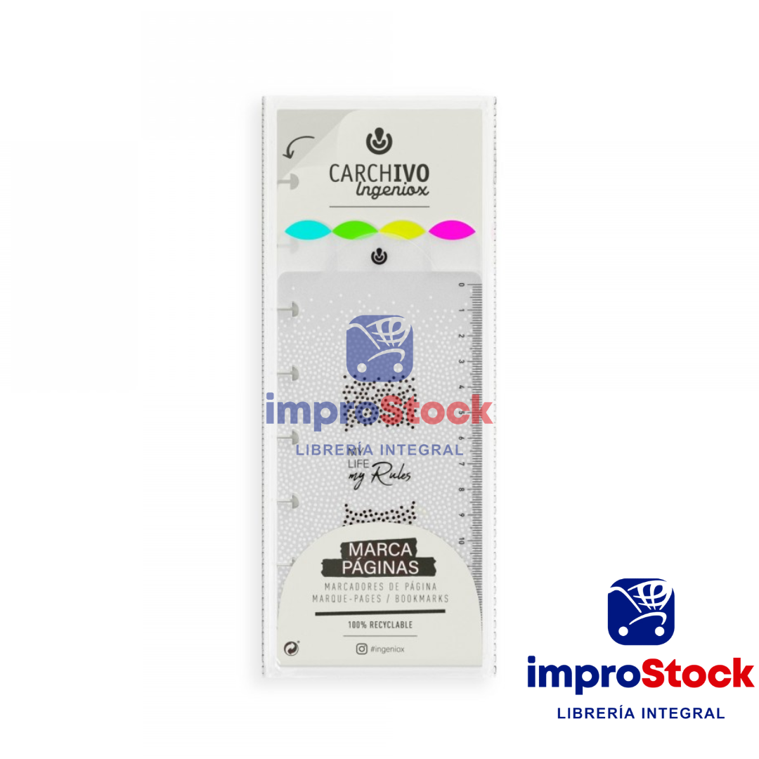 Los Marcapáginas Neon de CARCHIVO Ingeniox® añaden un toque de color y estilo a tu cuaderno. Disponibles en 4 colores vibrantes, son ideales para dividir secciones, marcar páginas importantes o resaltar información clave