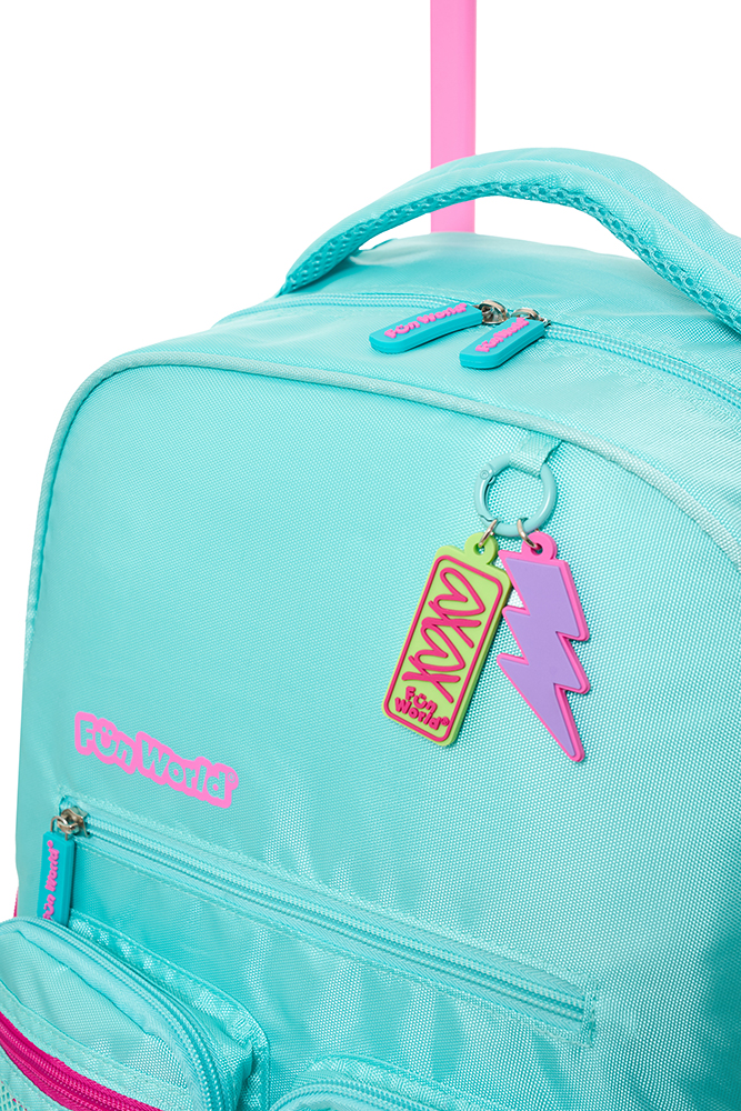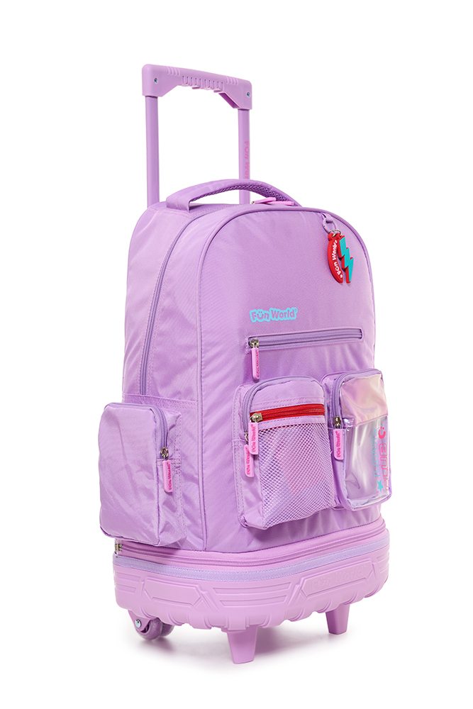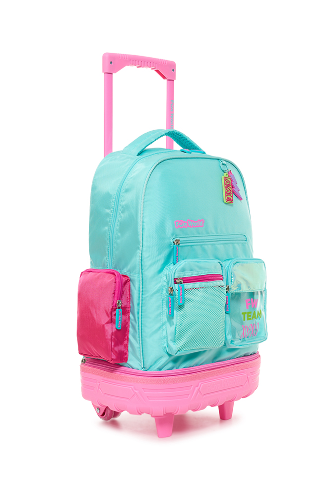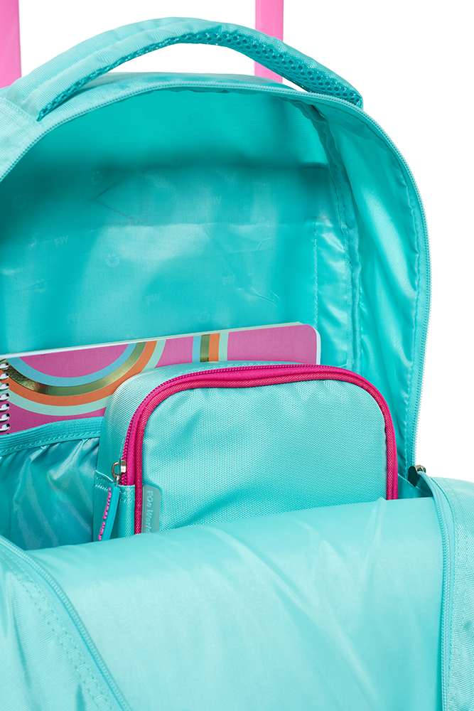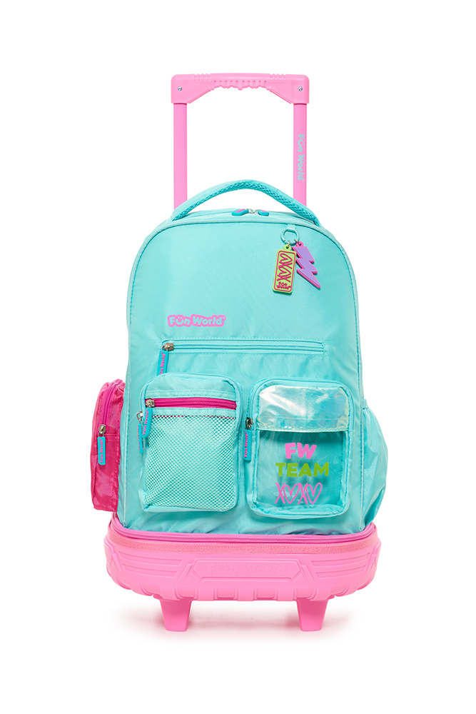Mochila con carro 18” Classic Teen Confeccionada con materiales resistentes y detalles modernos, ofrece practicidad y estilo para el día a día. Incluye llavero de goma desmontable, bolsillo frontal de PVC transparente y varios bolsillos y compartimentos para una mejor organización. Incluye un práctico bolsillo lateral para llevar la botella siempre a mano. El carro es desmontable y reforzado, con dos pares de ruedas dobles que aportan mayor estabilidad y durabilidad en cada uso. Disponible en dos variantes de color: violeta y acqua. Ideal para acompañar a los niños con funcionalid