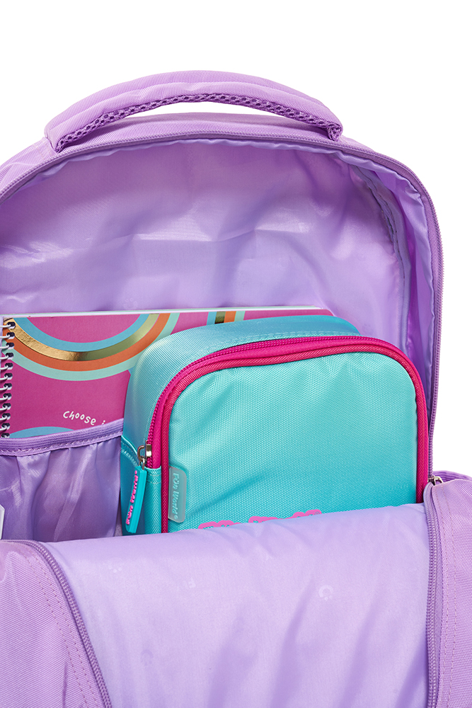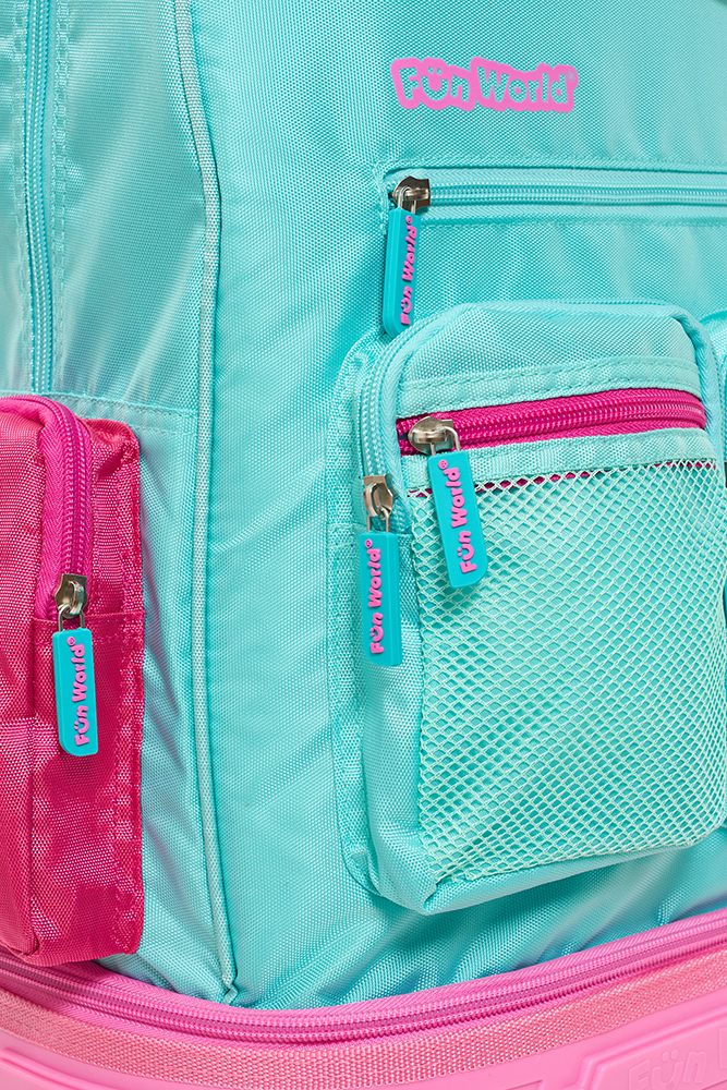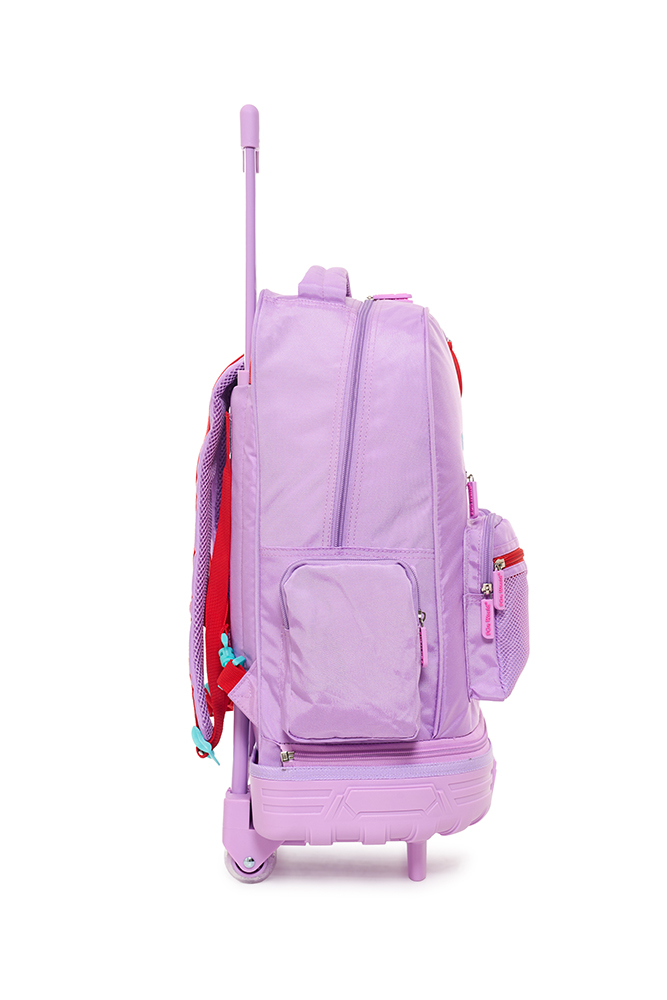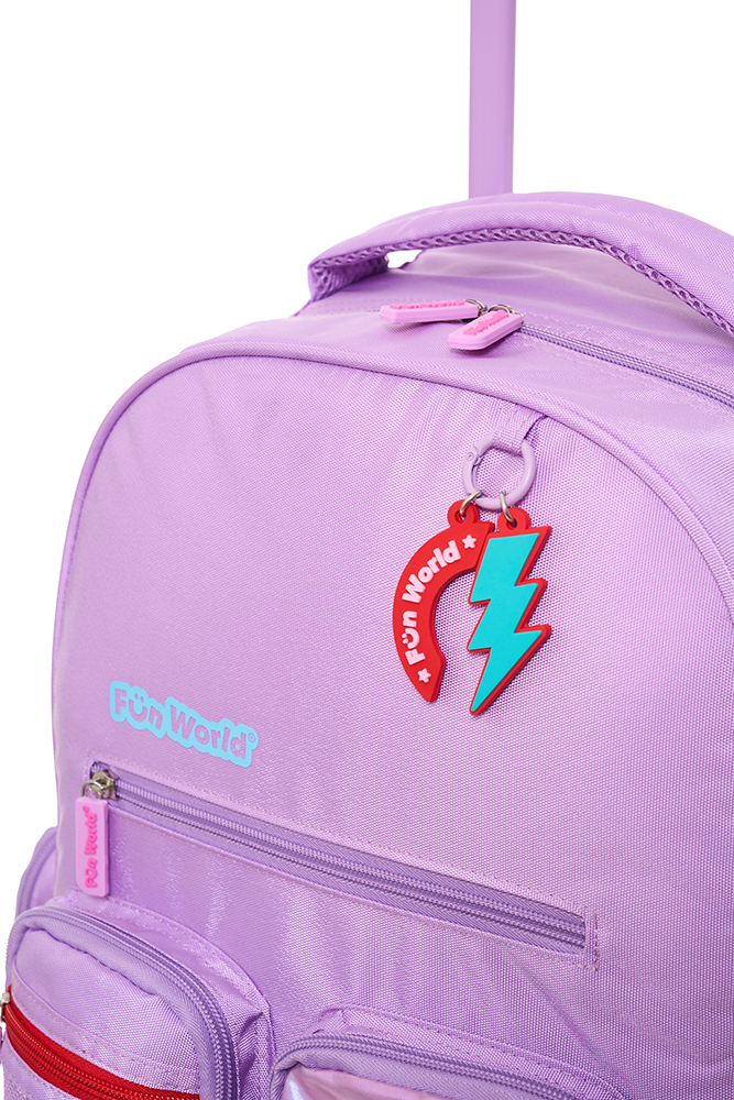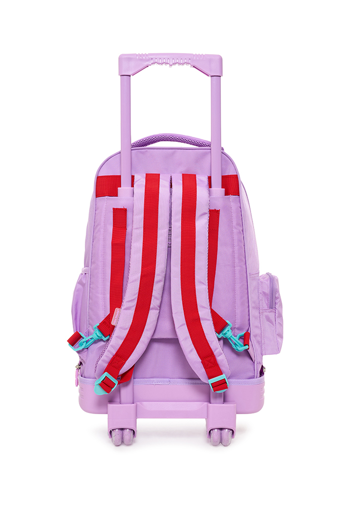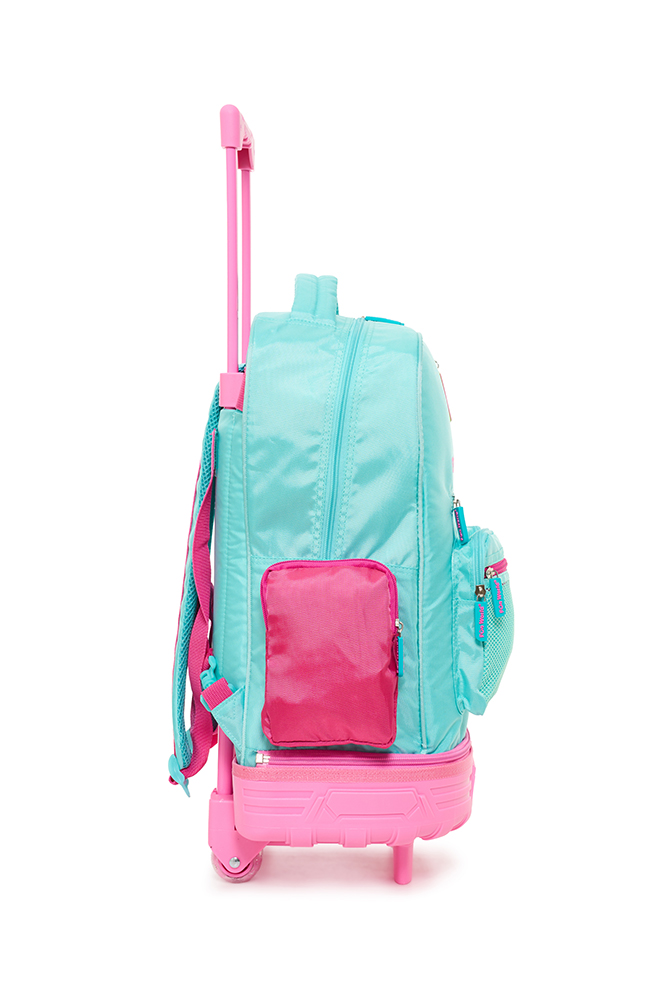 Mochila con carro 18” Classic Teen Confeccionada con materiales resistentes y detalles modernos, ofrece practicidad y estilo para el día a día. Incluye llavero de goma desmontable, bolsillo frontal de PVC transparente y varios bolsillos y compartimentos para una mejor organización. Incluye un práctico bolsillo lateral para llevar la botella siempre a mano. El carro es desmontable y reforzado, con dos pares de ruedas dobles que aportan mayor estabilidad y durabilidad en cada uso. Disponible en dos variantes de color: violeta y acqua. Ideal para acompañar a los niños con funcionalid