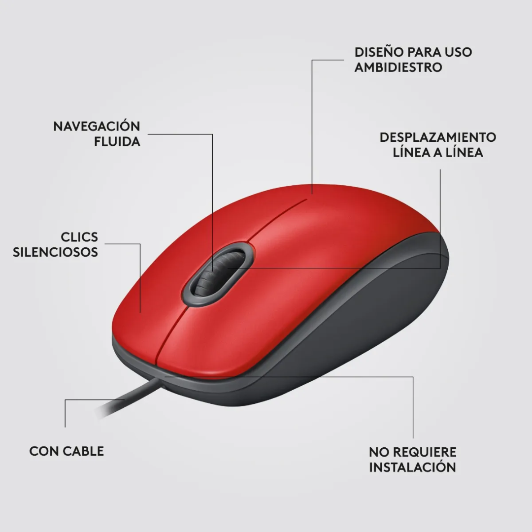 Con el Mouse Logitech M110 Silencioso Silent Touch en un vibrante color rojo, experimentarás una nueva forma de trabajar y jugar sin distracciones. Su diseño ergonómico ambidiestro lo hace perfecto tanto para diestros como para zurdos, brindando comodidad en largas sesiones de uso. Además, su tecnología Silent Touch reduce el ruido de clics, permitiéndote concentrarte en tus tareas sin interrumpir el ambiente que te rodea.