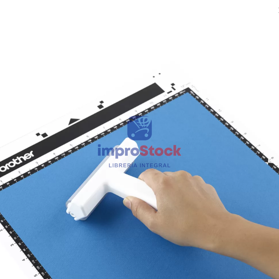 Dispone de un suave rodillo de goma que resulta ideal para sujetar el material de manera firme y uniforme al tapete de corte.
