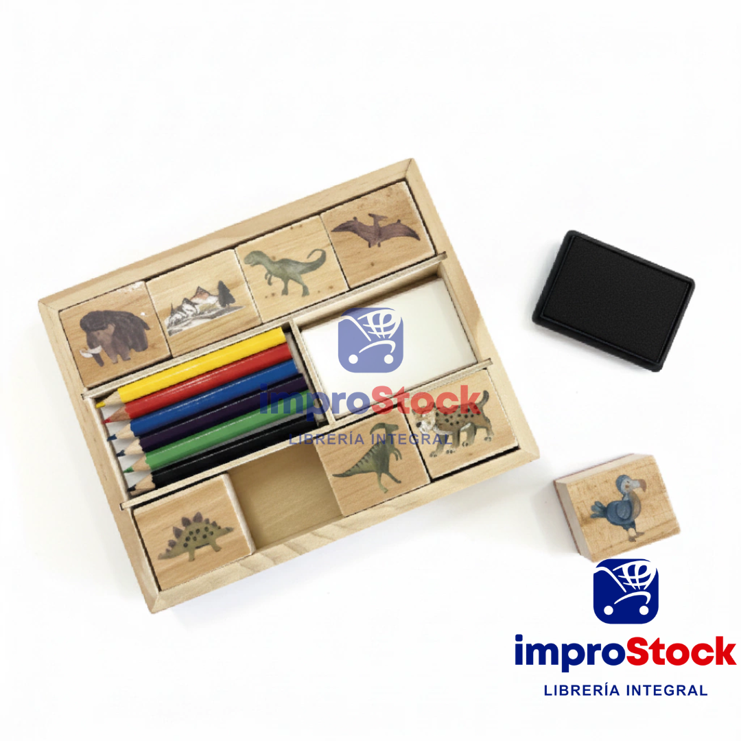 Sellos De Dino Madera Mas Lapices Las Lupes (342185) cantidad