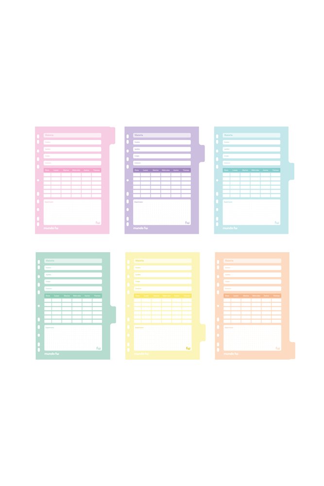 Set de 6 separadores con 6 colores distintos y lengüeta, . Con 3 perforaciones para facilitar su organización.