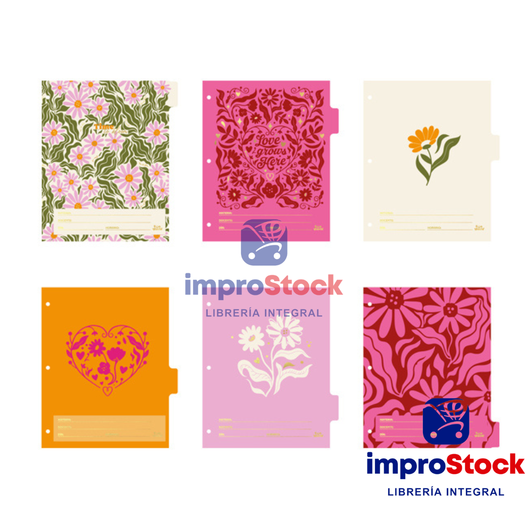 Set de 6 separadores con 6 motivos distintos y lengüeta, elaborados en papel cartulina de alta resistencia mate de alta calidad. Con 3 perforaciones para facilitar su organización. Viene en bolsa importada de alta resistencia. Medidas: 22,4 cm (con lengüeta) x 30 cm. Tiene detalles en tinta oro. Ideal para organizar documentos con estilo y durabilidad