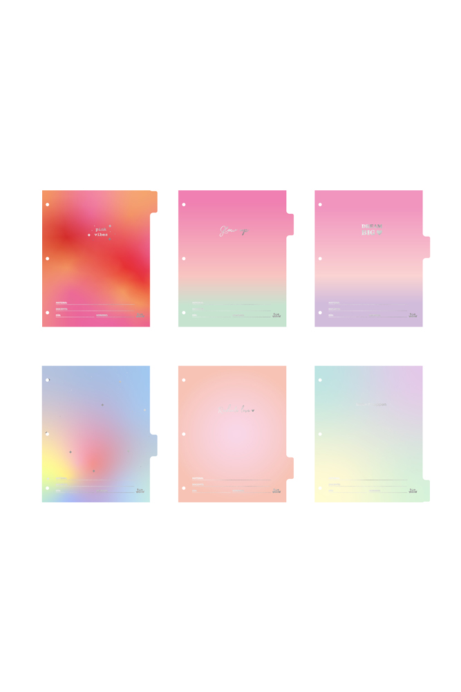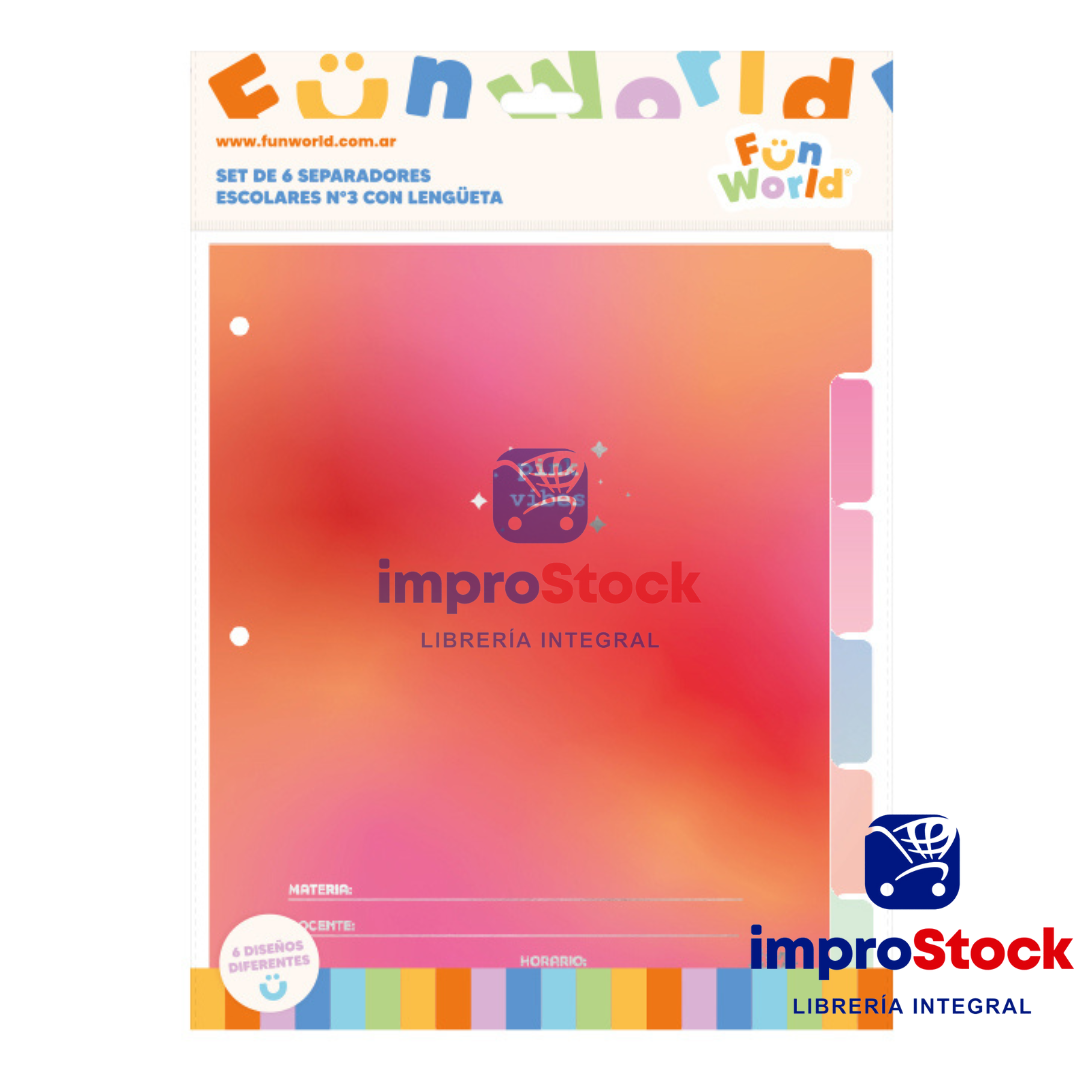 Set de 6 separadores con 6 colores distintos y lengüeta, . Con 3 perforaciones para facilitar su organización.
