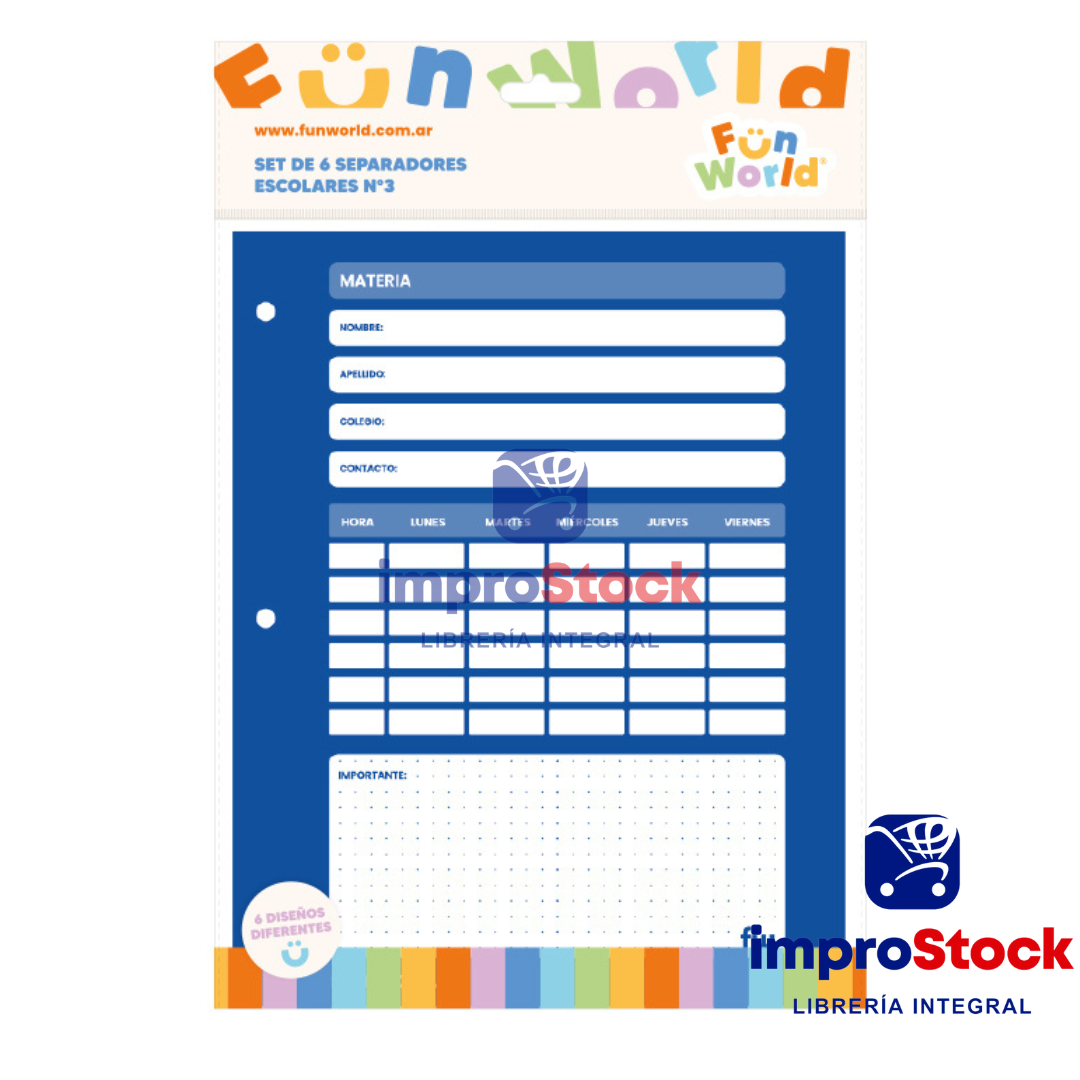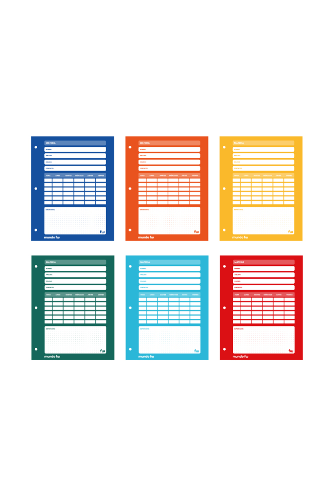 Set de 6 separadores con 6 colores distintos y lengüeta, . Con 3 perforaciones para facilitar su organización.