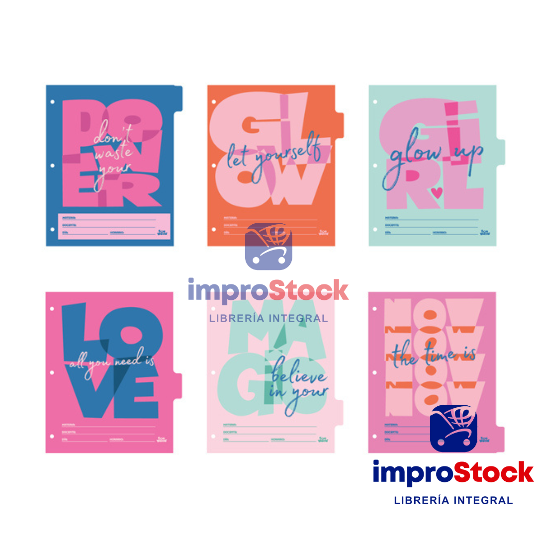 Set de 6 separadores con 6 motivos distintos y lengüeta, elaborados en papel cartulina de alta resistencia mate de alta calidad. Con 3 perforaciones para facilitar su organización. Viene en bolsa importada de alta resistencia. Medidas: 22,4 cm (con lengüeta) x 30 cm. Ideal para organizar documentos con estilo y durabilidad