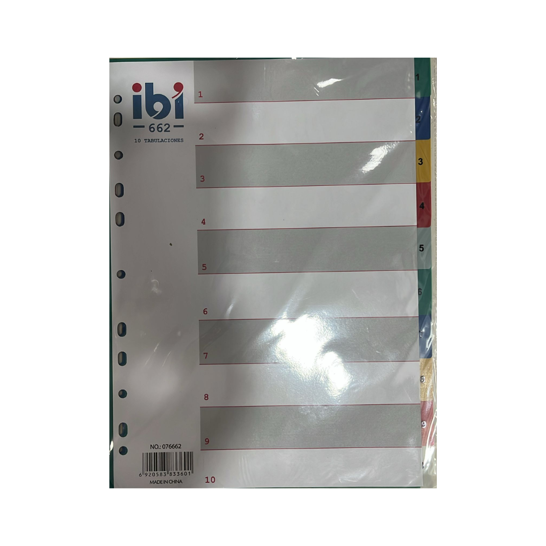 Separadores Tamaño A4 Con Lenguetas del 1 al 10, material acetato