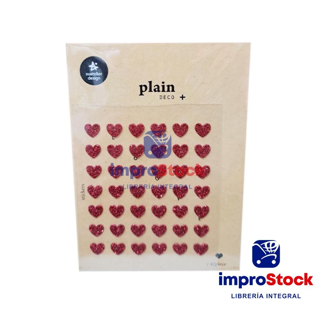 42 piezas de sticker corazon con glitter rojo