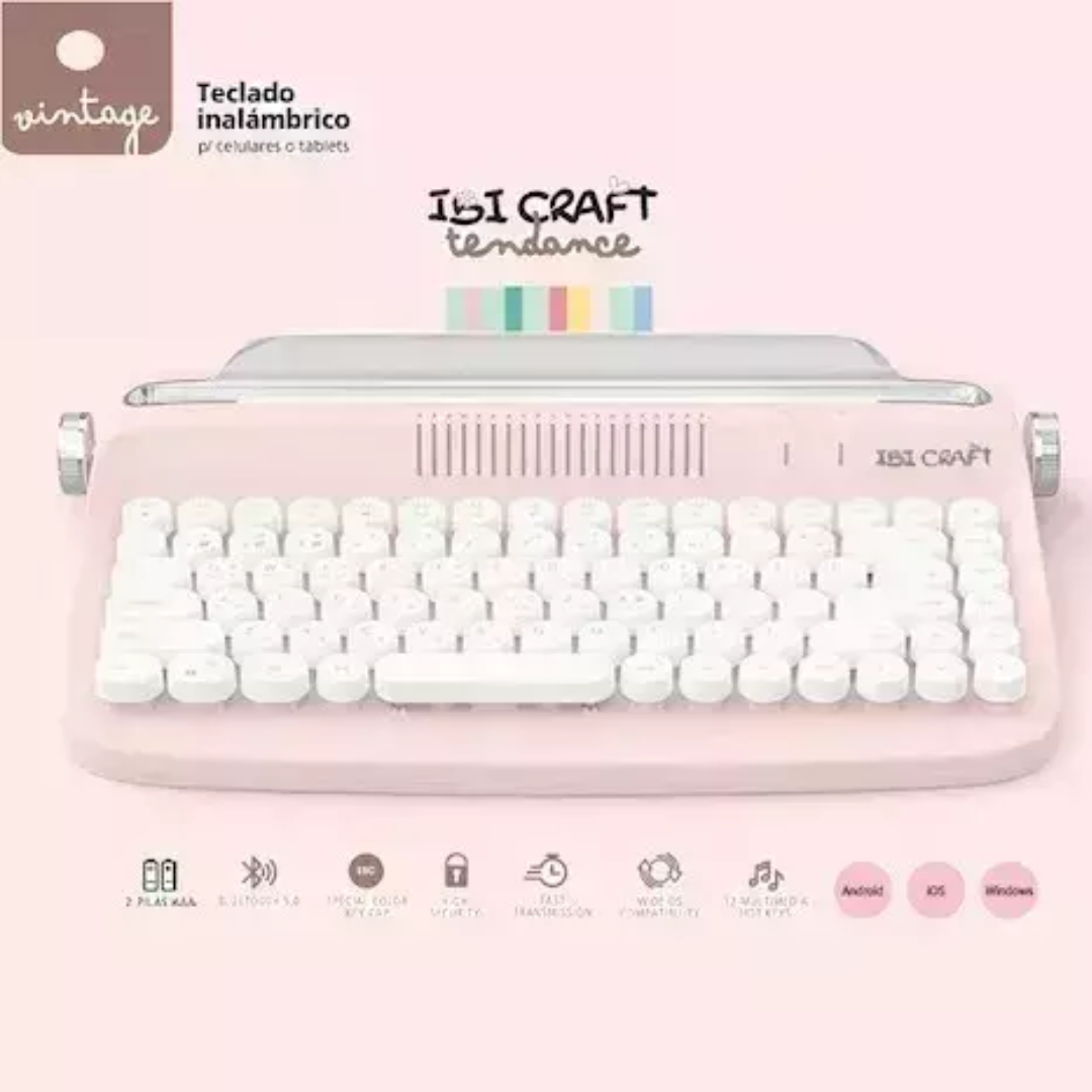 ¡Descubre el Teclado Bluetooth Ibi Craft Tendance Vintage! Este teclado inalámbrico no solo es una herramienta de trabajo, sino también una pieza de diseño que aportará un toque retro a tu espacio.