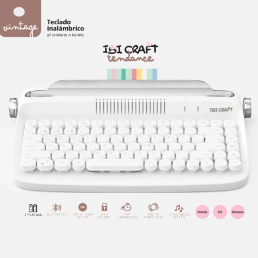 ¡Descubre el Teclado Bluetooth Ibi Craft Tendance Vintage! Este teclado inalámbrico no solo es una herramienta de trabajo, sino también una pieza de diseño que aportará un toque retro a tu espacio.