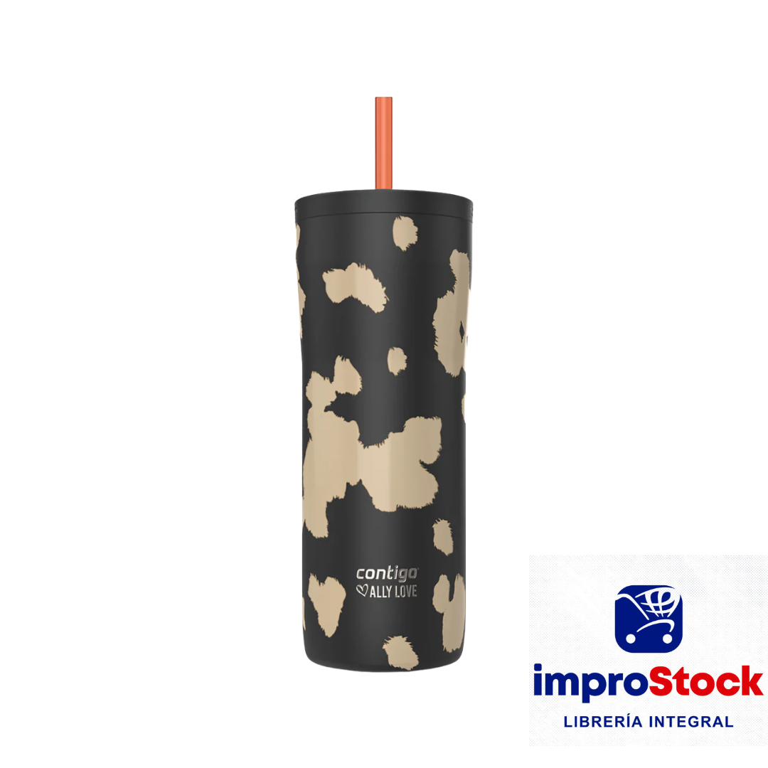 • Vaso térmico con pajita, de acero inoxidable con doble pared y aislamiento al vacío, y base antideslizante.